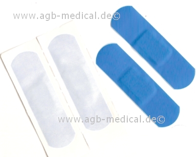 Die blaue Farbe dieser speziellen Pflaster dient der visuellen Erkennbarkeit.